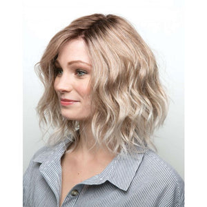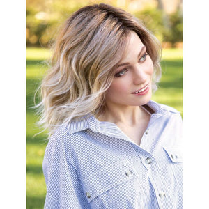 Þessi hárkolla er frá René of Paris Hi Fashion línunni. Hi Fashion línan hefur ávallt verið með hárkollur sem eru hannaðar með tísku á hverjum tíma í huga. Gæðahárkolla úr fiber hári með þetta fallega liðaða millisíða hár. Snið hárkollunnar er klippt í styttur sem gefur þessa fallegu hreyfingu. Þessi hárkolla er til í þessum fallega pastelbláa lit hjá okkur. Einnig er hægt að fá þessa í mörgum fallegum litum, sem dæmi eins og módelið með brúna ombre litinn. Hægt er að koma til okkar og sjá litaprufur og máta. Hárkollan er handgerð að hluta og er með gegnsæju efni við ennið þannig að hún er mjög þægileg og eðlileg að öllu leyti.