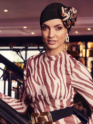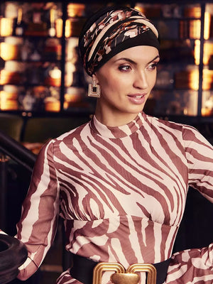 The Scarlett Turban can be combined with our other Scarlett models and has many styling options.